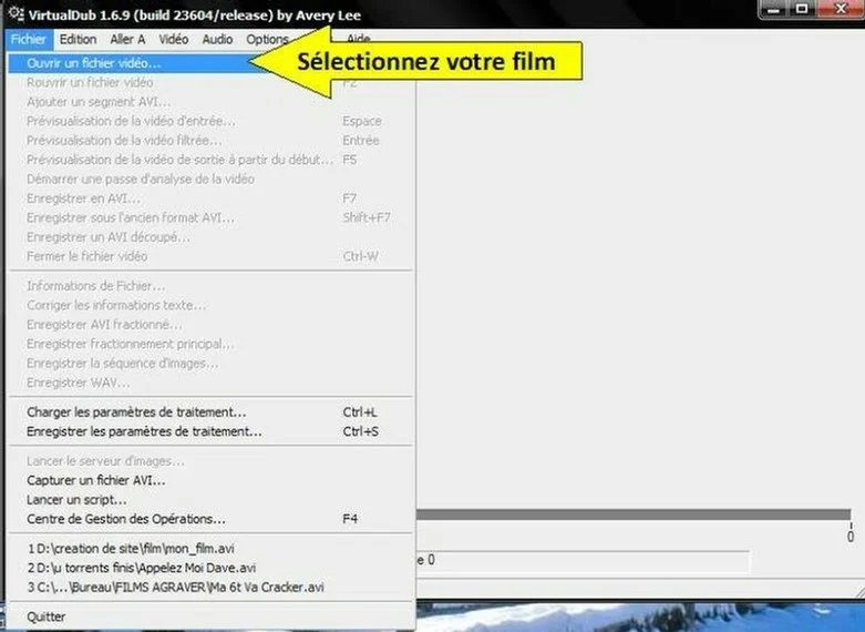 Comment modifier un divx avec le logiciel VirtualDub.